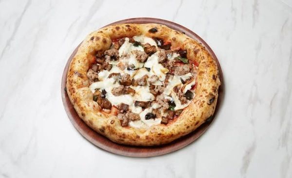 Tomato sauce + mozzarella + pan fried eggplant + gorgonzola cheese + pork sausage